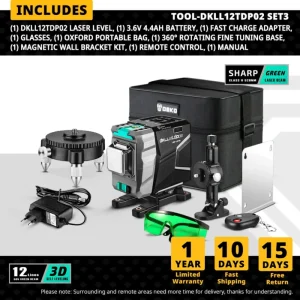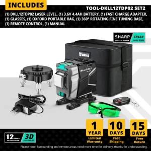 DEKO 3D 12-linjainen vihreä lasertasain, itsetasaava