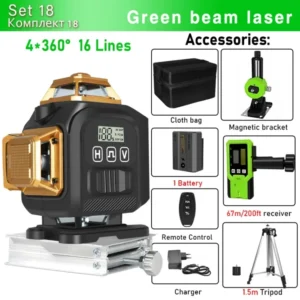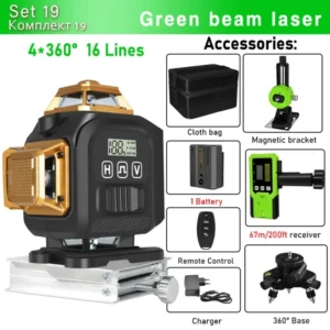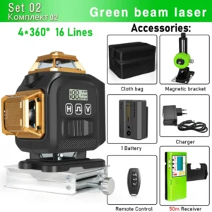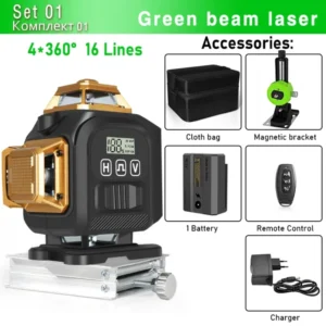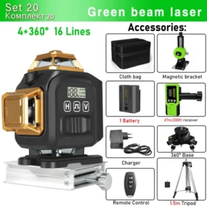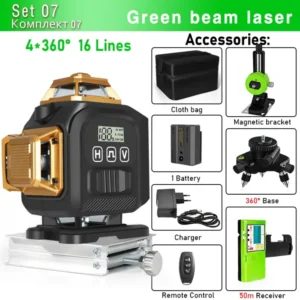 Clubiona 4D 16-linjan vihreä laserivaakasarja, kaukosäädin