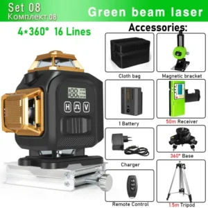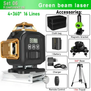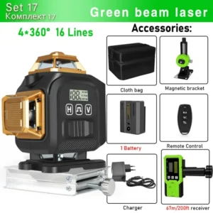 Clubiona 4D 16-linjan vihreälasertaso, 360°