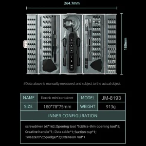 JAKEMY JM-8193 180-osainen tarkkuussähköruuvimeisselisarja