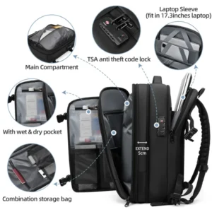 Monikäyttöinen matkareppu, laajennettava, USB-lataus, 17″