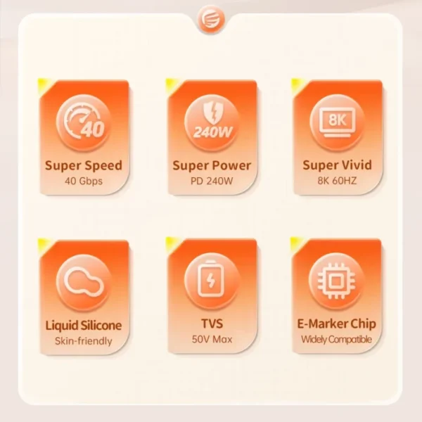 ORICO USB4 -kaapeli tukee Thunderbolt 3 -teknologiaa, joka mahdollistaa videoiden siirron jopa 8K-resoluutiossa ja datansiirtonopeudet jopa 40 Gbps. Tämä tekee siitä ihanteellisen valinnan suurten tiedostojen siirtämiseen ja korkearesoluutioisten videoiden katseluun ilman viivettä.