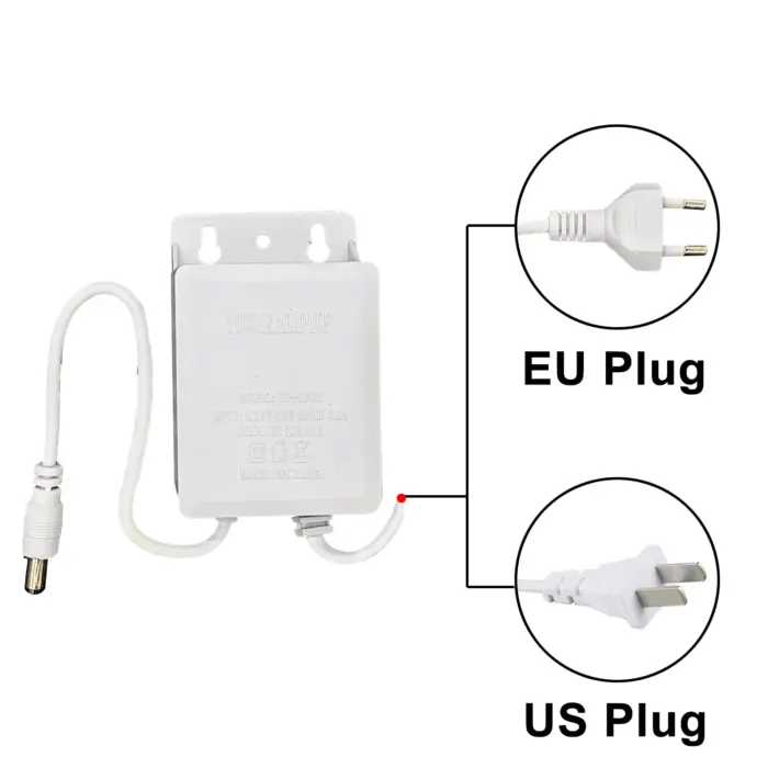 Tehokas ja kestävä virtalähdeadapteri US/EU -standardien mukaisesti, suunniteltu erityisesti ulkokäyttöön ja kosteisiin ympäristöihin. Tämä vesitiivis virtalähde soveltuu erinomaisesti valvontakameroille, DVR- ja NVR-järjestelmille, tulostimille, reitittimille, LED-valoille, modeemeille, DV-laitteille sekä muille DC 12V -laitteille, jotka tarvitsevat enintään 2A virtaa.