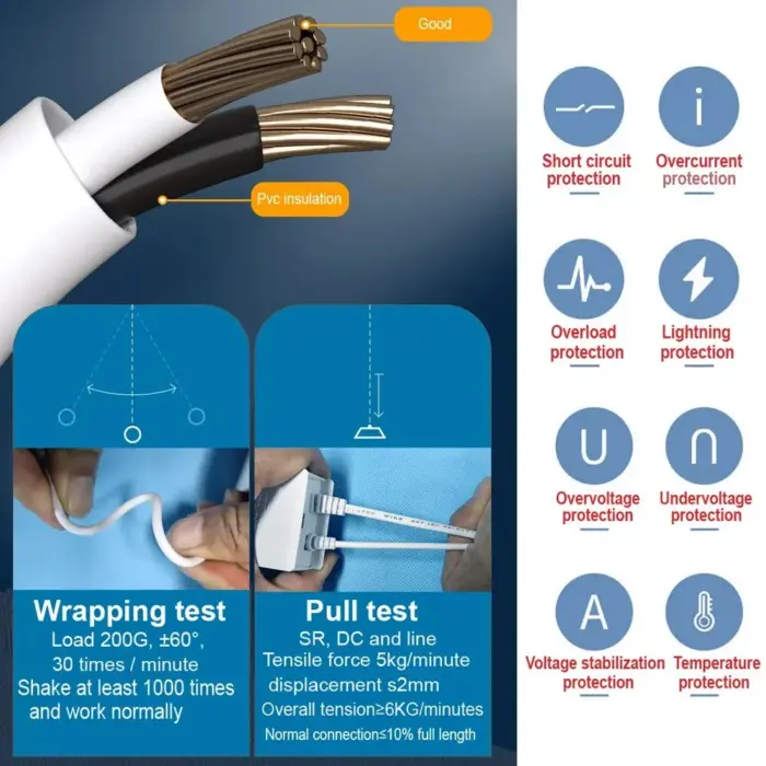 – Tarkka ja vakaa DC 12V lähtöjännite varmistaa laitteiden turvallisen ja tehokkaan toiminnan ilman ylikuormitusta.