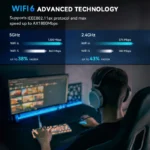 – Dual Band -tuki: Mahdollistaa laitteen toiminnan sekä 2,4 GHz että 5 GHz taajuuksilla, vähentäen ruuhkia ja parantaen yhteysnopeuksia.