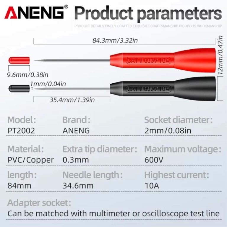 Tässä on kätevä parivaljakko tarkoille mittareille! Nämä monikäyttöiset neulat sopivat erinomaisesti mikrosuorituksiin ja tarkkoihin mittauksiin. Laadukkaat mittaritulpat tekevät mittauksesta helppoa ja tarkkaa. Hanki omasi ja tee mittauksesta sujuvaa ja tarkkaa työtä!